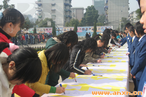 為迎接綠色奧運,全國各地的環保志愿者均以不同形式的活動倡議環保、響應奧林匹克精神。新華學子也不甘落后,一場“拒絕白色垃圾,共建綠色校園的大型簽名活動”在新華西區操場拉開了帷幕……