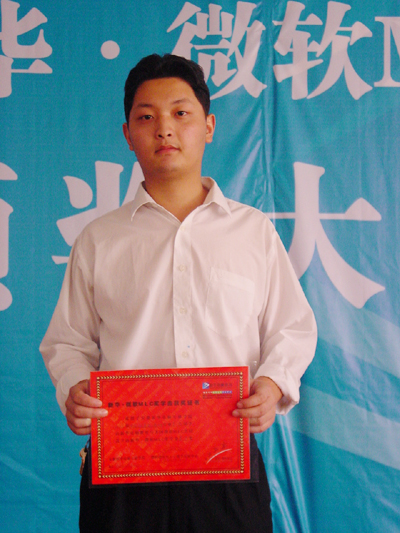 2004年8月18日,是一個讓我激動萬分的日子,就在這一天,我很幸運的成為首次“新華-微軟MLC”獎學金獲得者中的一份子,對于這樣的榮譽,我感到非常驕傲和自豪。能在200多名參賽者中脫穎而出,憑著自己的努力和勤奮走上領獎臺,接受院領導頒發的獲獎證書和獎金,內心的喜悅無以言表。