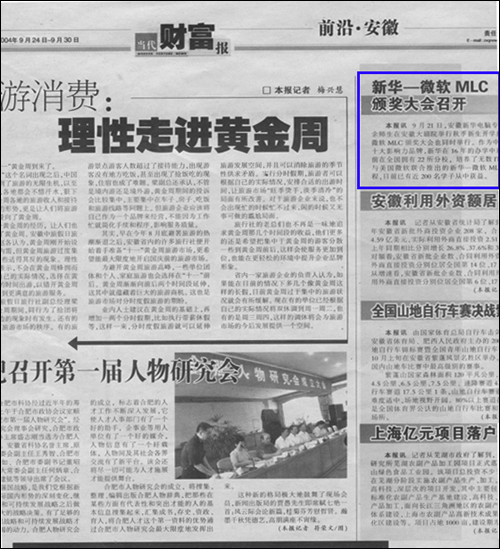 24—30日的《當代財富報》報道了“新華—微軟MLC頒獎大會召開”的消息,敬請關注!