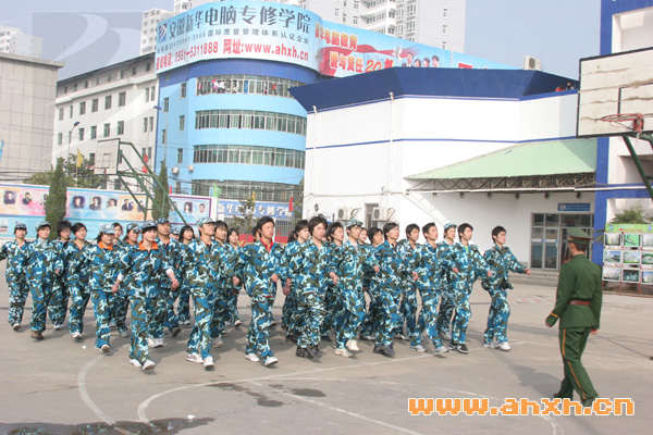 脫去中學的稚嫩和社會的繁雜,迎來激動的時刻,安徽新華電腦專修學院2008年春季新生正在接受IT教育新生活的第一次洗禮。在和煦的春風中,他們以更加飽滿地熱情投身于這次軍訓中。正步踢的是那么的有力度、口號喊的是那么的響亮、軍歌唱的是那么的有激情。看!教官揮灑汗水,不停的示范動作,而同學們更是精神奕奕。