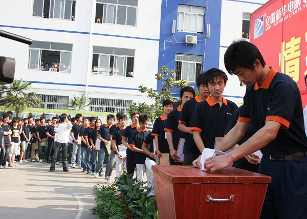 5月16日,安徽新華電腦專修學院學院西區操場上人頭攢動,“情系巴蜀、新華有愛”抗震救災捐贈活動在這里隆重舉行。4000余名師生聚集與此,代表全院師生為災區奉獻一份愛心。學院及各學區領導出席了本次捐贈儀式并率先向災區奉獻了自己的愛心。