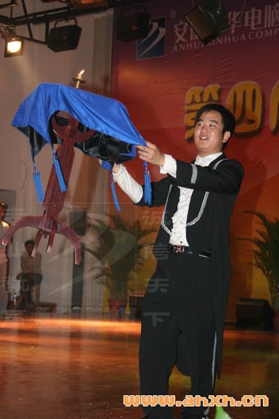 新華畢業(yè)學(xué)子張波在晚會上獻上精彩的魔術(shù)表演