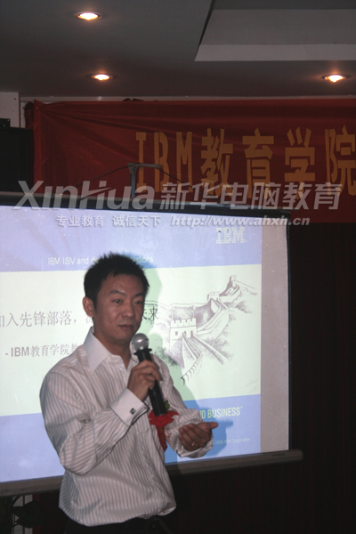 何揚總監從辦學實力、專業體系、師資力量、就業保障四個方面詳細介紹了學院的整體情況。安徽新華電腦專修學院隸屬于新華教育集團,始終堅持“新華教育,興教報國”的辦學理念,已為社會培養40萬優秀IT人才;學院現擁有“365國家緊缺型人才培養計劃”和“TC精英教育”兩大專業體系;在北京、上海、杭州、廣州等地設立了20多家就業辦事處,并先后與海爾集團、新浪集團等40000多家用人單位建立了長期協議用人關系,形成了覆蓋全國的畢業生就業網絡。他表示,IBM教育學院作為一項培養軟件人才的創新性計劃,新華電腦教育作為中國IT教育第一品牌,雙方的合作可謂是強強聯合,有了首次的成功合作,今后也一定會取得更好的合作成果。