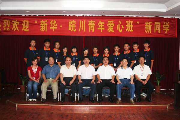 “新華 皖川青年愛心班”首批學(xué)子和與會(huì)領(lǐng)導(dǎo)合影留念