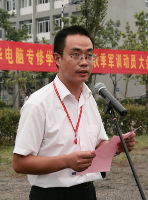 大會(huì)在雄壯的國歌聲中拉開帷幕,安徽新華電腦專修學(xué)院新南區(qū)校區(qū)負(fù)責(zé)人丁國順在開訓(xùn)動(dòng)員發(fā)言中指出:安徽新華電腦專修學(xué)院作為一所快速發(fā)展的IT教育優(yōu)秀品牌院校,多年來一直重視新生軍訓(xùn)工作,把它作為新生入學(xué)的第一課,是學(xué)院“三教兩訓(xùn)”工作之一。希望同學(xué)們利用軍訓(xùn)互相了解,增進(jìn)友誼,培養(yǎng)情感,培養(yǎng)集體觀念、集體榮譽(yù)感與自豪感,增強(qiáng)合作、溝通能力,展現(xiàn)新團(tuán)隊(duì)的精神,發(fā)揮團(tuán)隊(duì)作用。