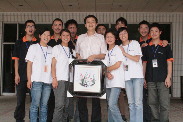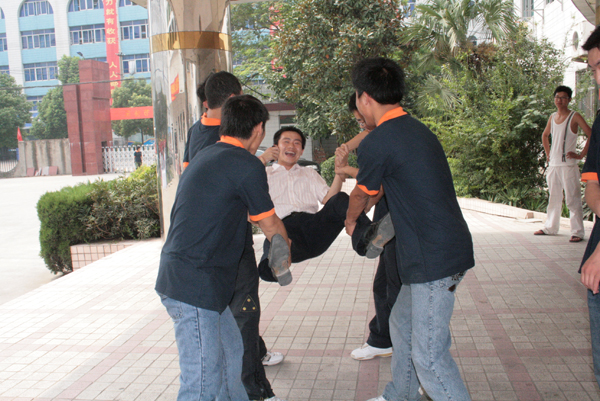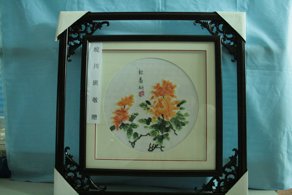 9號晚上的時候,母增群同學(xué)給我打電話。讓我第二天到學(xué)校一趟,說她們有事情找我。我當(dāng)時很著急,以為他們出了什么事情,但他們說沒事,就是讓我第二天一定要去學(xué)校找他們。第二天上午下班后,我打車來到新華電腦專修學(xué)院365計劃教育西區(qū),還沒有走進(jìn)宣傳辦的辦公室,就看到同學(xué)們興高采烈的向我跑來,圍著我有說有笑,像是久別以后重逢的親人。我有半個月沒有見到這群孩子了,見到他們我很激動。不知什么時候,我有一種失重的感覺,等我反應(yīng)過來的時候,我已被男孩子們抬起來了。他們把我拋起,齊聲喊著:程老師,教師節(jié)快樂!我雙腳著地的時候,母增群帶著幾個女同學(xué)把他們親手繡制的十字繡送到我手里。接過這個十字繡的時候,我強(qiáng)忍著沒有讓自己流出眼淚。這個時候我什么也說不出來了。只是簡單的說了聲:“謝謝,同學(xué)們,謝謝你們!”
