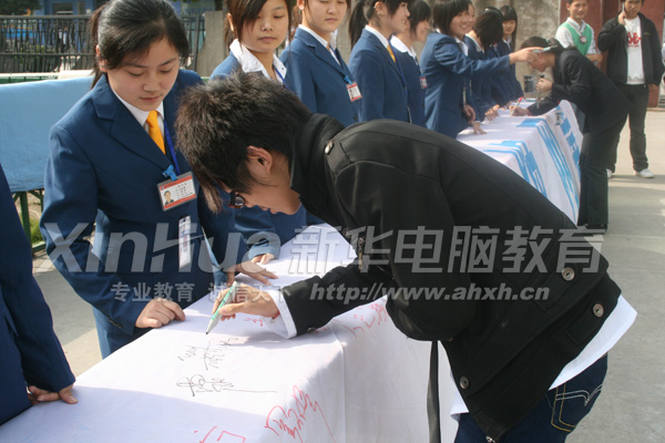 為貫徹團中央、教育部、文化部、國務院新聞部、全國青聯、全國少工委、中國青少年網絡協會聯合頒布的《全國青少年網絡文明公約》的文件精神,增強全院學子自覺抵制網上不良信息的意識。11月4日,安徽新華電腦專修學院365計劃教育西區電腦設計學生會舉行了“拒絕網毒 文明上網”大型簽名活動。