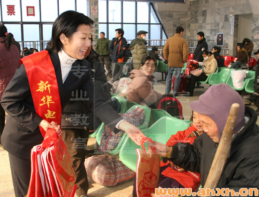 2005年1月27日,安徽新華電腦專修學院“故鄉親,新華情”幫扶隊來到合肥火車站和合肥汽車站,他們犧牲自己的休息時間,去幫助那些急切想和家人團聚的游子和在外找尋生活的打工者,還向返鄉的親人們贈送了大米、臺歷、年畫和手提帶等禮物,將節日的祝福,濃濃的情誼和旅途的便捷帶給廣大旅客。