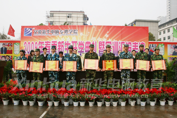 3月21日,安徽新華電腦專修學院2009年春季新生開學典禮暨軍訓匯報表演在西區操場圓滿閉幕。部隊領導、學院領導以及各學區、各部門領導出席了本次開學典禮并為獲獎學子頒獎。開學典禮上,千余名新生以激昂的姿態、積極的精神風貌迎接領導的檢閱,并為自己的軍訓生活交了一份滿意的答卷。