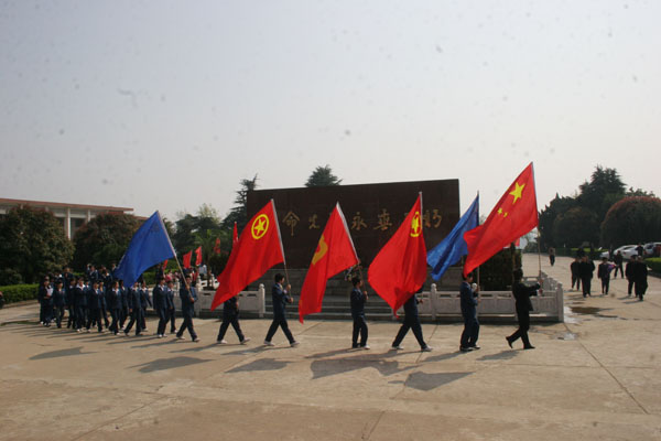 活動中,來自三個校區的200余名師生在“革命先烈永垂不朽”紀念碑前,向烈士們獻上花籃。整個過程莊嚴肅穆,短短地默哀寄托了大家無限的哀思之情。默哀結束后,全體師生在此舉行了簡短而莊嚴的宣誓:“向先烈學習,學會做人,學會做事,學會學習,學會健體;時刻準備著為共產主義事業奮斗終身,人民為先,祖國至上,誠實勇敢,自律自強,奮發有為,誓做棟梁,振興中華,再鑄輝煌!