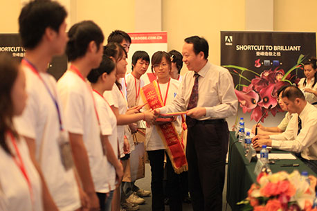 新華訊 “新華--Adobe/AutoDesk巔峰創想數字藝術大賽”頒獎典禮于2009年7月18日在北京大學百年講堂舉行,新華教育集團董事長吳偉先生、AutoDesk公司培訓與認證事業部中國區經理吳新儀女士、Adobe公司中國區教育推廣經理于秀芹女士、北京新華電腦學校張宏校長、北京新東方烹飪學校潘耀才校長、新華教育集團研究院何揚院長等領導對獲獎選手進行了頒獎。