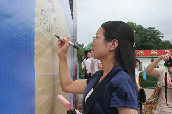 畢業典禮上,“皖川愛心班”向學習、生活了一年的母校贈送一幅蜀繡,感謝母校和恩師的教誨。學子喬雪梅在畢業感言中寫到:新華讓我知道了人間的真情,新華為我們營造了一個良好的學習環境,讓我們能夠踏踏實實的學習,也讓我明白了一個人要時刻懷有一顆感恩的心,更要有一顆真摯的愛心。我們會把安徽人民的愛帶回家鄉,愿我們的明天更加美好!