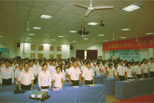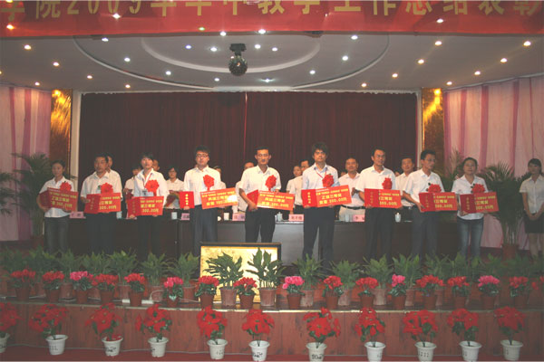 大會在雄壯的國歌聲中拉開帷幕。首先,就業指導中心主任和教學副院長分別向大會作了《2009年上半年就業工作總結報告》和《2009年年中教學工作總結報告》。報告中,他們用詳實的數據和明晰的圖表向大家證明了上半年學院就業、教學工作取得的優異成果。同時,也指出了工作中存在的不足之處,并表示一定會努力改進。