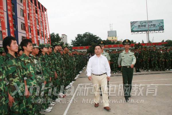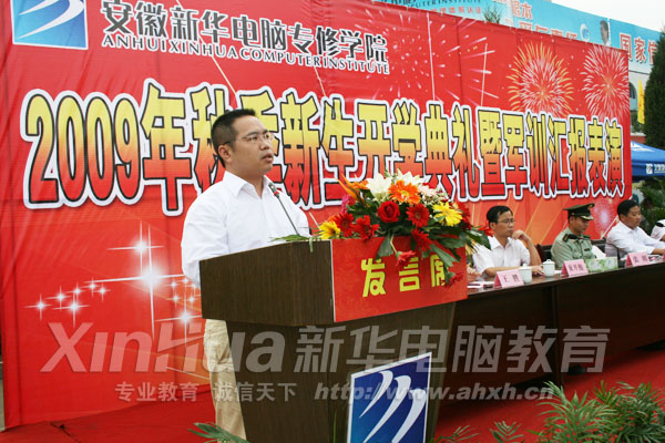 安徽新華電腦專修學(xué)院院長張明在講話中指出,本次軍訓(xùn)恰逢中華人民共和國成立60周年,是同學(xué)們的榮譽,也是責(zé)任。60年來,全中國人民團(tuán)結(jié)一心,攜手共進(jìn),艱苦奮斗,大大增強了綜合國力,實現(xiàn)了中華民族的偉大復(fù)興。作為民族發(fā)展基石的教育業(yè)也迅速發(fā)展,IT教育成為不可或缺的一支力量。希望同學(xué)們要有時代緊迫感,要認(rèn)真對待每一天,努力學(xué)習(xí);盡快適應(yīng)新環(huán)境和融入新集體;樹立遠(yuǎn)大的理想和抱負(fù)。在今后,用優(yōu)秀的成績報答父母和老師,向祖國60華誕獻(xiàn)禮。