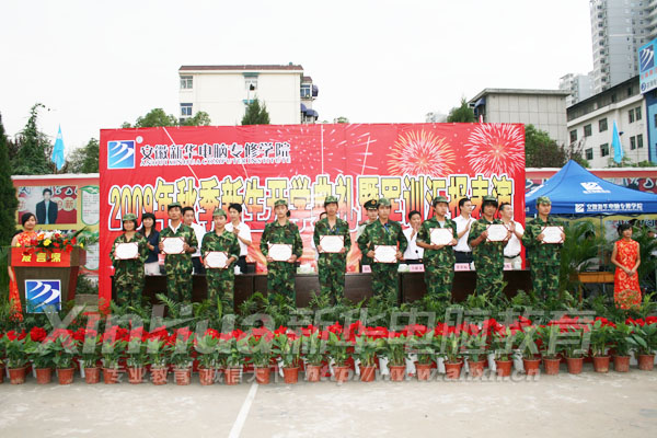 隨后,教務(wù)處負(fù)責(zé)人宣讀了學(xué)院《關(guān)于表彰2009級新生軍訓(xùn)先進(jìn)集體和個人的決定》,并與與會領(lǐng)導(dǎo)一同給他們頒獎。通過評獎評優(yōu),以此勉勵他們在今后的學(xué)習(xí)中取得更好成績;同時,希望大家以他們?yōu)榘駱樱^續(xù)發(fā)揚團(tuán)結(jié)緊張、嚴(yán)肅活潑的良好作風(fēng),頑強拼搏,刻苦學(xué)習(xí),爭取新的、更大的進(jìn)步!