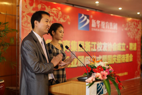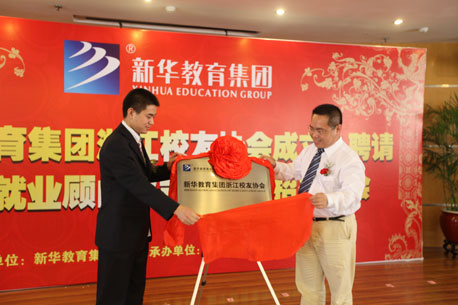 新華訊 金秋颯爽,涼風宜人。2009年9月19日下午,在這樣一個雨后初晴的日子里,新華教育集團浙江校友協會成立·聘請企業就業顧問儀式暨國慶招待酒會在杭州市寶善賓館八樓會議室隆重舉行,新華教育集團就業管理部部長宋振慶、新華教育集團電腦事業部副部長陸真、安徽新華電腦專修學院院長張明等領導出席會議并發表了講話。