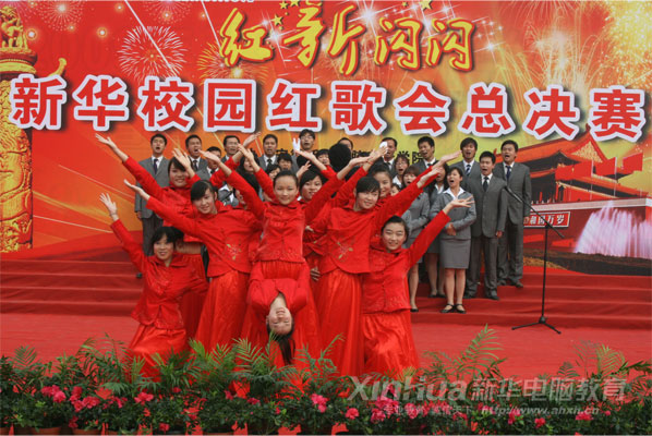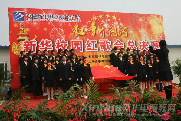 10月31日,安徽新華電腦專修學院職教城新校區(qū)內彩旗招展,歌聲嘹亮,“紅‘新’閃閃”紅歌會總決賽在此成功舉行。大家歡聚一堂共慶祖國60華誕,賀新華部分學子喬遷職教城新校區(qū)。