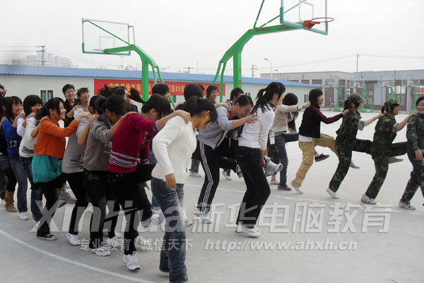 一大早,操場上就響起了“引領校園文化 展現自我才華”的口號聲和陣陣歡笑聲。在進行800米長跑后,一天的訓練正式開始了。20分鐘內各小組完成了隊名、隊歌、口號、標志的設計,兩人三足,左右左規律則都體現團隊合作精神。大西瓜小西瓜、桃花朵朵開、變化隊形則體現大家的應變能力。大家開心的玩著每個游戲,盡自己最大的努力為團隊贏得勝利。