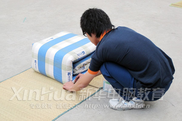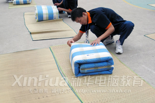 背景:為培養(yǎng)同學(xué)們積極整理內(nèi)務(wù)、養(yǎng)成打掃宿舍衛(wèi)生的良好生活習(xí)慣。10月26日,安徽新華電腦專修學(xué)院TC西校區(qū)舉辦了疊軍被大賽。參賽的同學(xué)們積極準備、認真比賽,表現(xiàn)突出。