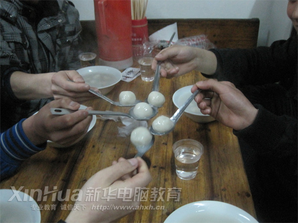 365西校區新華—信息技術應用工程師專業0902班也開展了“吃元宵 度佳節”活動。班長劉道明同學說告訴筆者,元宵佳節能跟全班的同學一起度過真的很高興。希望大家每天開心快樂,保持一份好心情,擁有一個好身體,來迎接未來的挑戰。十月份就要畢業了,希望大家在以后的學習中,知識和技能有更大的提高。利用新華提供的平臺,走向社會,創造輝煌的明天!