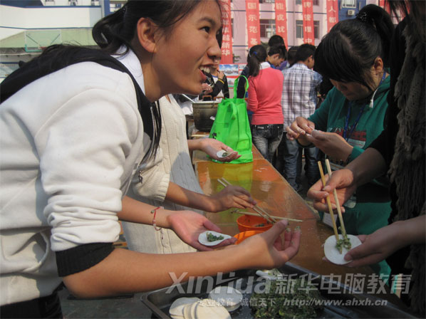 2010年11月6日,安徽新華電腦專修學院校園通訊社、電子商務學生會、E軒文學社在365西校區操場舉行“三社聯誼之包餃子”活動。本次活動以“提高大家動手能力,加強團隊協作精神,增強各社團溝通配合能力”為目的,進一步提高三社成員信息傳達能力和工作效率,使得全體社員在今后的工作中能夠更好地發揮自身作用,塑造自身價值。活動初始,在購買完包餃子所需材料后,由各社團社長為大家講解活動流程及意義并調動全場氣氛,隨后在場各位同學便大展身手。