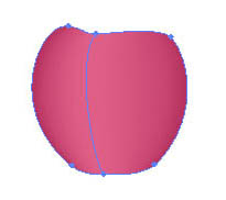 用白箭頭工具調節(jié)外形以切合蘋果的形狀,由于引時的節(jié)點很少,很容易利用方向線控制形狀 |