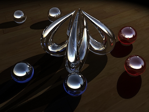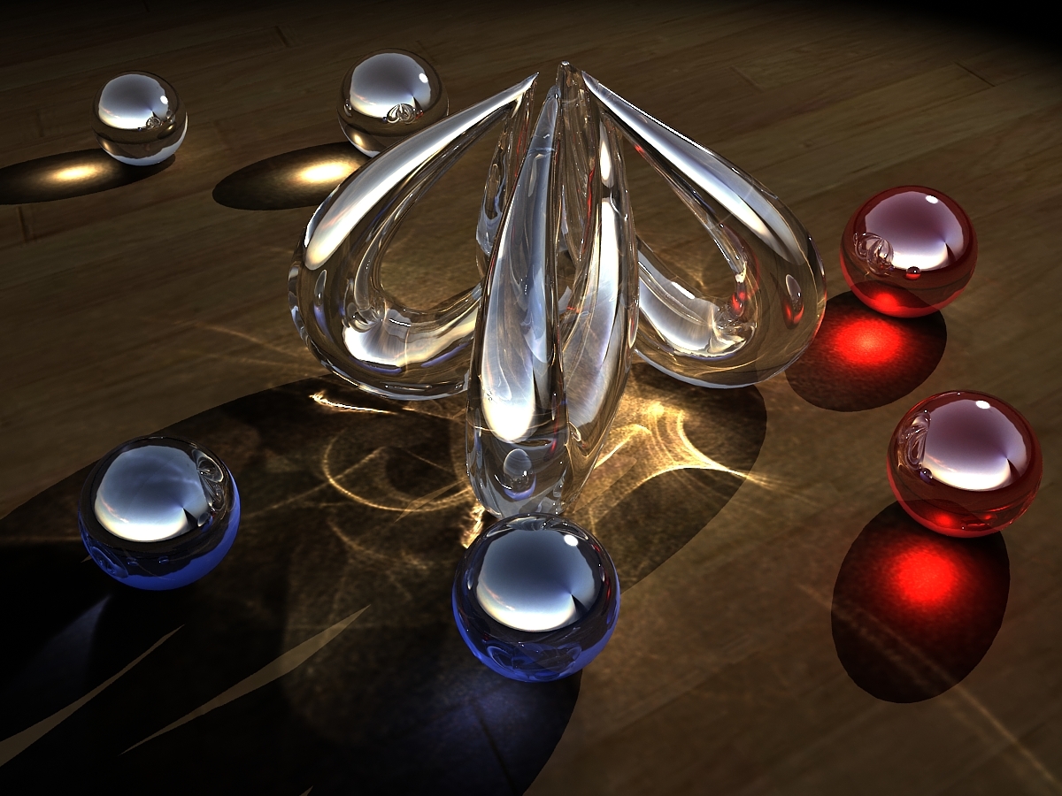 在目前的CG技術中,無論你使用哪一個渲染器,創建焦散的基本流程是相同的,其中三個操作至關重要!一是讓光源產生焦散光子,二是激活對象的焦散投射,三是設置光子的數量。這三個操作,第一個是“告訴”光線追蹤引擎,要對哪一個光源進行正向光線追蹤;第二個是“告訴”光線追蹤引擎,正向光線追蹤的目標是哪一個對象。第三個是“告訴”光線追蹤引擎,光源將產生多少條正向光線追蹤光線;也就是說,焦散使用的正向光線追蹤并不是針對場景中全部光源、全部光線和全部對象的,這樣,計算量自然大大減少,從而使正向光線追蹤能夠進行實質性的運用,也讓全局光照中的鏡面反射-------漫反射之間的光線追蹤成為可能。
