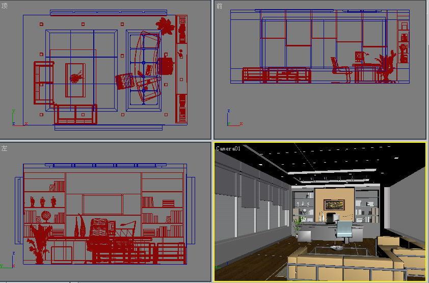 打開一個會議室的原始場景,在這個場景中我已經(jīng)設(shè)置好了材質(zhì),由于是利用Radiosity來完成,大部分材質(zhì)用的都是Standard標準材質(zhì)和Architectural建筑材質(zhì)。