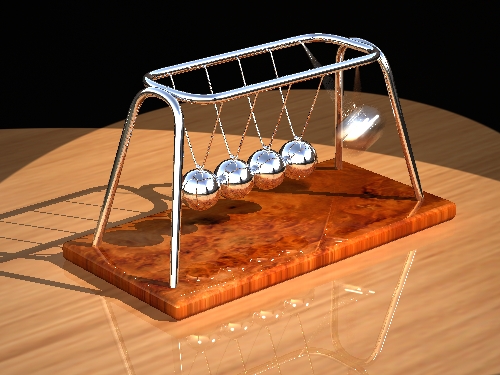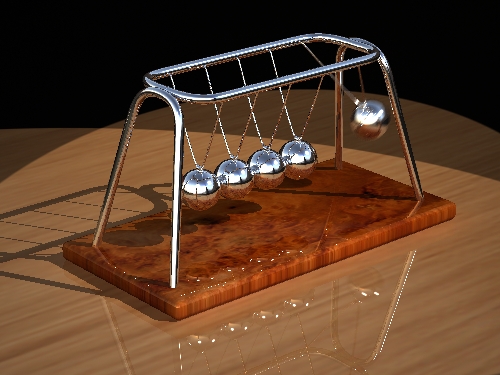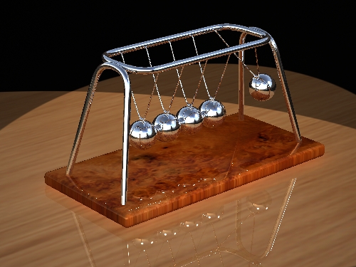決定物體運動模糊劇烈程度的因素有兩個,一個是物體本身運動速度的快慢,還有一個因素就是相機的快門速度。這里小球本身的運動速度就不調了,我們來試一試調節相機的快門速度是否能加強小球的運動模糊效果。我們剛才的渲染參數中shutter speed快門速度設置值為3,也就是1/3秒,我們再將它降為2,也就是進光時間控制在1/2秒,這樣它的進光量增加,運動模糊效果會更明顯一些,渲染效果如圖5-5所示。