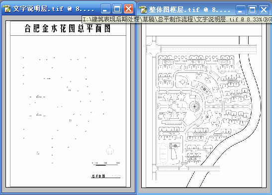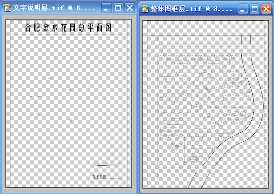 一、啟動PhotoShop軟件,打開整體圖框層.TIF和文字說明層.TIF。如圖01所示。
