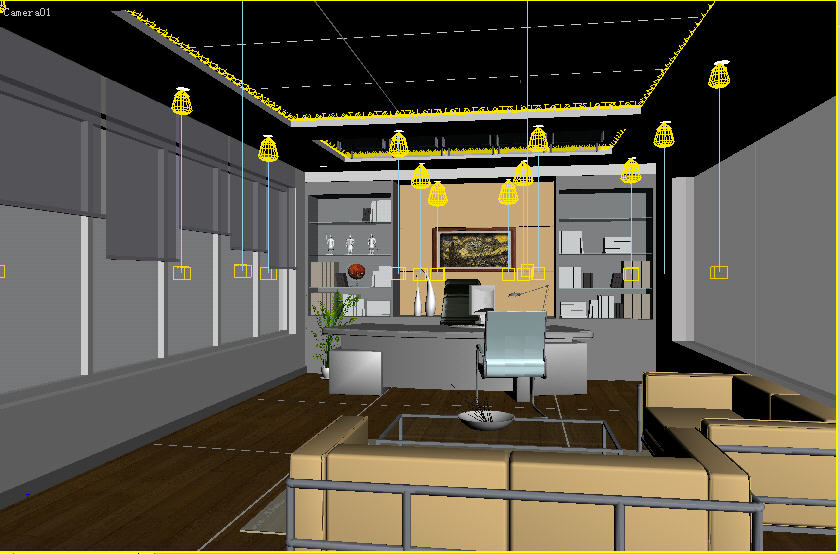 從圖中就可以明顯看出,由于場景中光線散發出的光子沒有反彈,所以造成受光的區域比較亮,而背光的區域漆黑一片,這樣的效果是不符合我們的預期的,而且也是不符合現實規律的,因為自然界中的光線都是有反彈的。接下來我們就要利用3dsmax內置的光能傳遞引擎來模擬真實的全局光照(GI)效果。