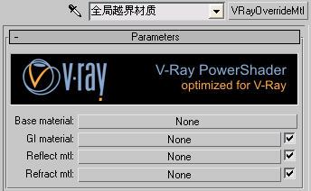 按鍵盤上的M鍵打開(kāi)材質(zhì)編輯器,將材質(zhì)類型切換為VRayOverrideMtl,它的參數(shù)面板非常的簡(jiǎn)潔,如圖24-1所示。