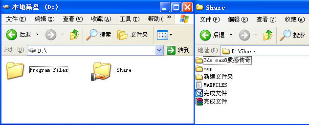 (3) 將打包好的文件放在某個(gè)磁盤分區(qū)的根目錄下的某個(gè)文件夾中,如“D:\Share”,并且一定要為該文件夾設(shè)置共享,這樣別的機(jī)器才能訪問到。