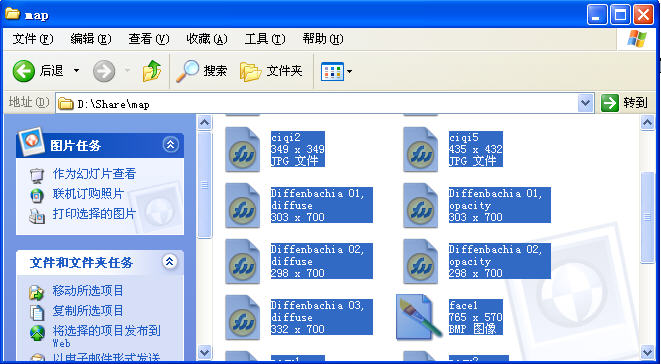 A:首先,在共享文件夾中新建一個(gè)子文件夾名為“貼圖”,然后將解壓之后散亂的所有貼圖文件包括光域網(wǎng)文件統(tǒng)一放置在這個(gè)新文件夾中,這樣便于下一步的路徑打通,整理后的貼圖路徑效果如圖23-2所示。注意如果是利用光子圖進(jìn)行加速渲染,那么光子文件也必須放入該文件夾中。
