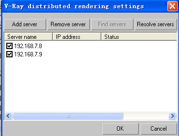 按下鍵盤上的F10鍵打開渲染設(shè)置面板,然后展開“渲染器”選項(xiàng)卡下的“系統(tǒng)”面板,勾選“Distributed rendering(分布式渲染)”參數(shù)區(qū)中的Distributed按鈕,然后單擊Settings…按鈕,此時(shí)會(huì)彈出一個(gè)名為“V-Ray distributed rendering settings”的設(shè)置面板。單擊“Add server”按鈕,將聯(lián)機(jī)電腦的IP地址一一輸入即可。