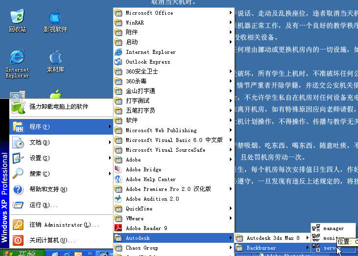 接著在主機(jī)中啟用backburn中的server設(shè)置,然后將彈出的信息窗口直接最小化即可,啟用路徑如圖23-6所示。