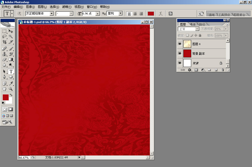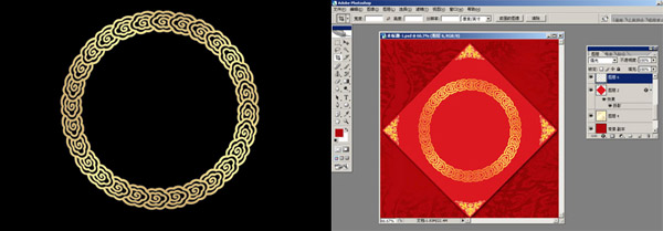 1. 新建500*500文檔,填充R:176,G:7.B:14紅色背景。將素材圖1-1,CTRL+T縮放至合適大小,并將圖層混合模式設置為正片疊底如圖:圖1-1