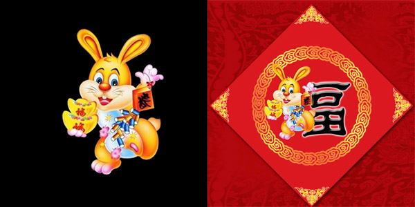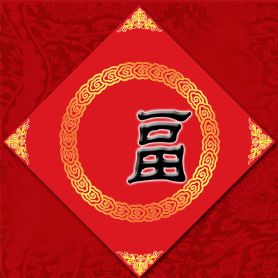 5.選擇文字工具,輸入福字,改變字體:方正琥珀簡體,添加圖層樣式:斜面浮雕,外發光,并利用選區將福字左邊刪除。如圖:1-6