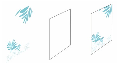 2) 用貝塞爾曲線勾勒出花紋,在利用精確裁剪到傾斜的矩形圖形中,得到: