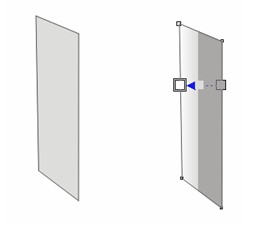 3) 從正面矩形復制一份,寬度壓細,高度不變。利用交互式填充工具調整如下圖形: