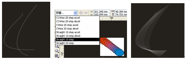3)再繪制兩段曲線,同時使用交互式調合工具進行調合,如圖所示: