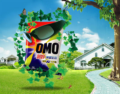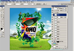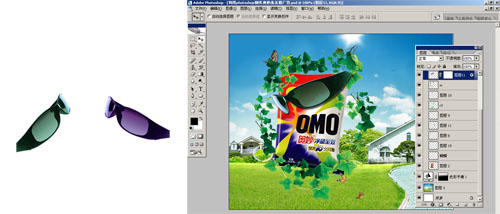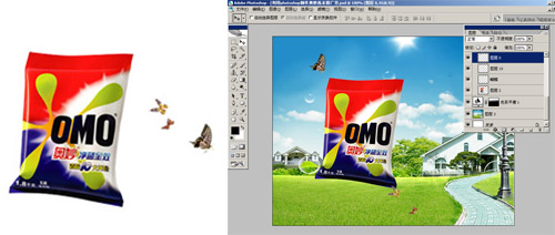 2. 新建一圖層組,打開洗衣粉素材1-3,利用魔棒工具W選擇白色部分,將選區(qū)進行反選CTRL+SHIFT+I,選擇移動并重新排列如圖:圖1-4