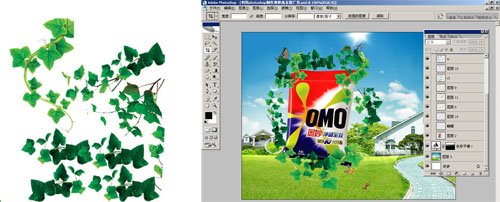 3.將素材圖1-6中的綠葉分別利用魔棒工具W進行選擇,選擇并重新組合如圖:圖1-7