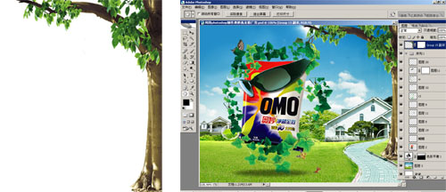 6. 將素材圖1-11利用魔棒工具W選擇,選擇工具移動,自由變換C TRL+T縮放添加蒙版對樹根部進行處理,最終效果如圖:圖1-12