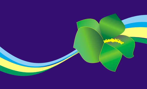 3) 使用貝賽爾工具繪制花朵,并設(shè)置漸變色彩,如圖所示: