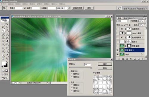 1、打開原圖素材,Ctrl + J把背景圖層復(fù)制一層,執(zhí)行濾鏡——模糊——徑向模糊。方法:縮放,品質(zhì):好。100%。如圖1-1