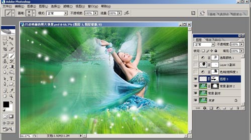 10、添加調(diào)整圖層——選取顏色,數(shù)值:紅色:C:-40M:-5Y:78K:-6、黃色:C:31M:100Y:-90K:0、綠色:C:84M:66Y:-100K:41.如圖1-10