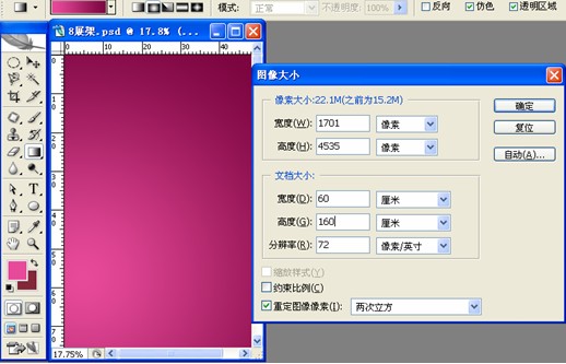 1) 新建文件,尺寸如圖,并使用漸變工具填充漸變色,顏色設置如下圖所示: