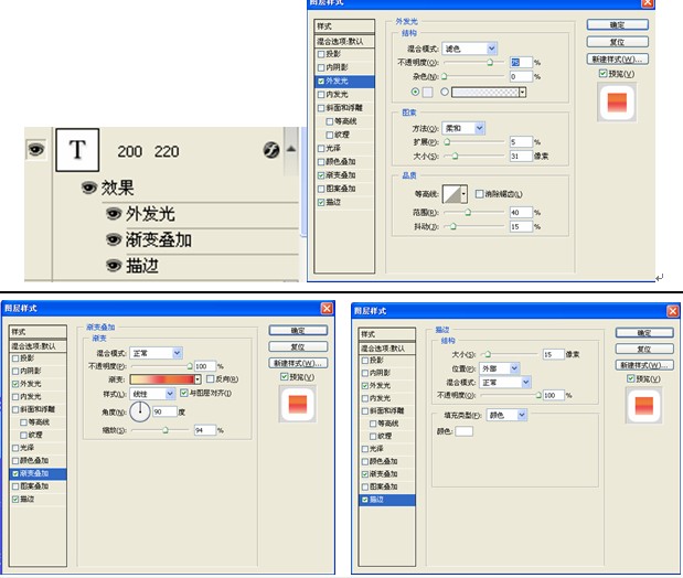 3) 輸入主題文字,并設置圖層樣式,如圖所示: