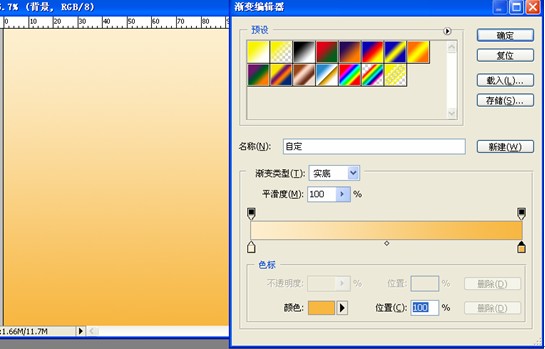 2) 新建圖層1,用矩形選區工具繪制背景層一半大小的矩形選區,填充漸變色,色彩方向與背景層方向相反,如圖所示: